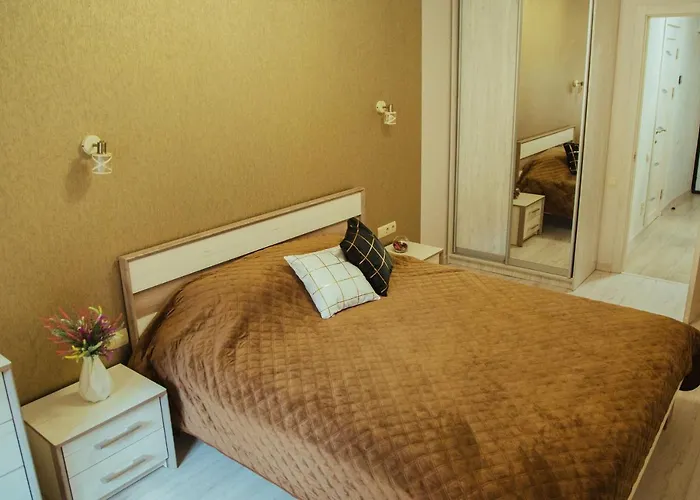 Mikrohullámú sütő, hűtő és mosógép is rendelkezésre állnak. Ez az apartman 0,5 km-re fekszik a Lviv nemzetkozi repuloter repülőtértől.